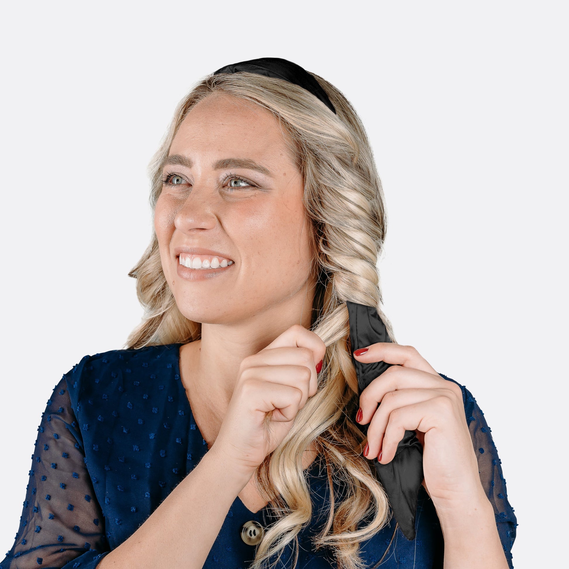 - Wrap slightly damp hair around The Original Heatless Curling Headband™