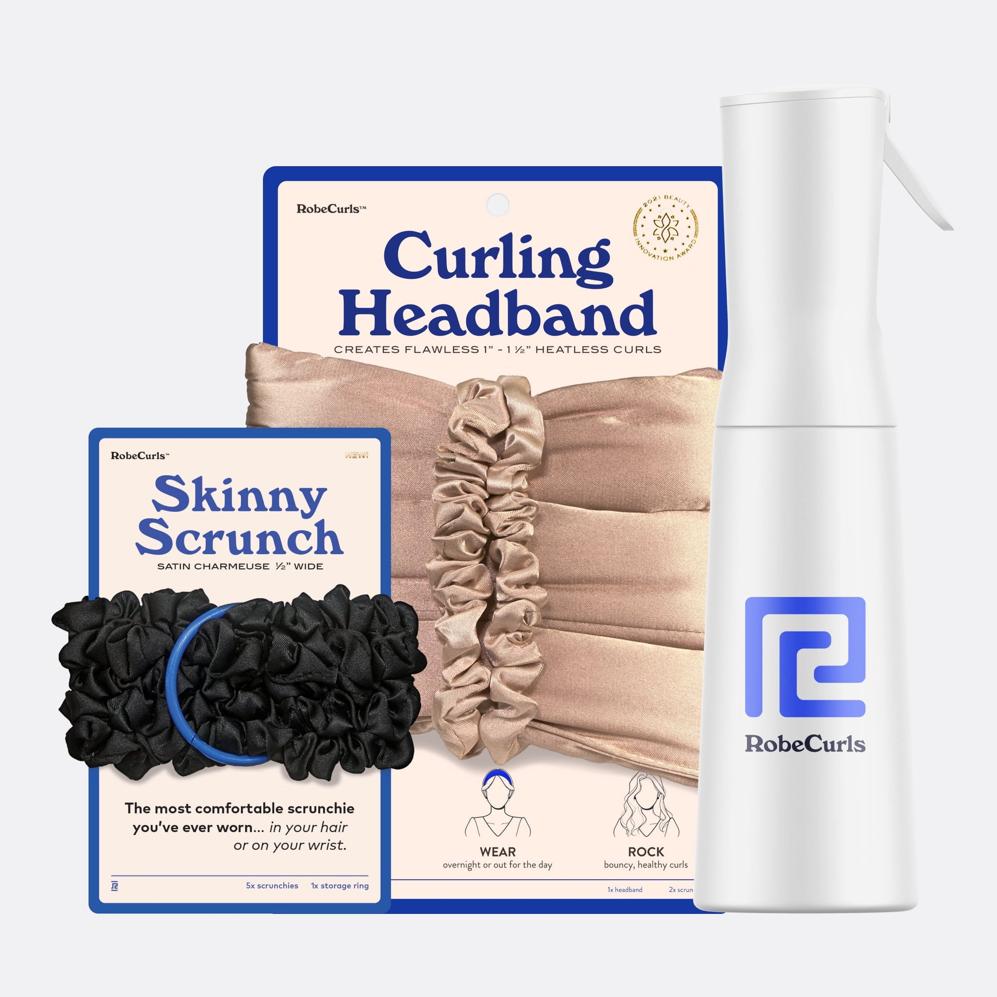 Together, the Curling Headband™, Skinny Scrunch™, and Mr. Spritzer make an ideal combination for achieving beautiful, long-lasting curls with ease and comfort.Try our bundle today and experience the magic of heatless curls with RobeCurls®.